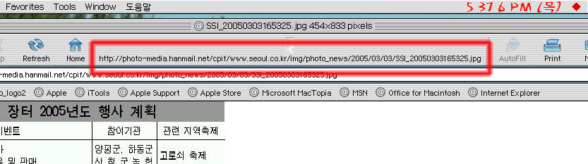 언제부터인가 익스플로러 상단 버튼 부분에 이 주소가 나와 있습니다.