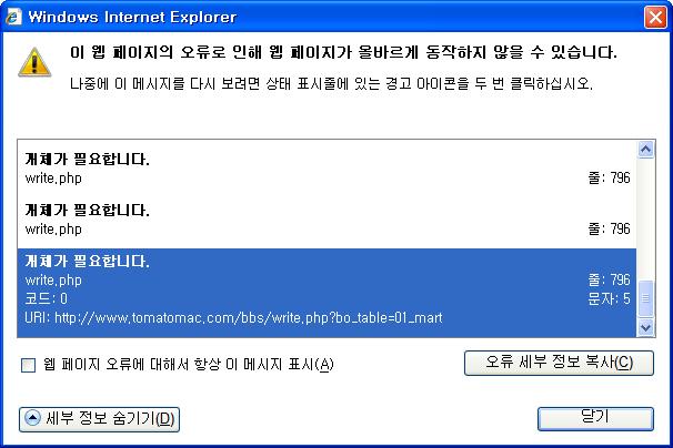 확인해 보겠습니다. 몇일전에 광고글이 하루에 몇십개씩 올라와서 좀 프로그램을 만졌는데... 오류가 있나 보내요. 오늘 꼭 고쳐 놓도록 하겠습니다.